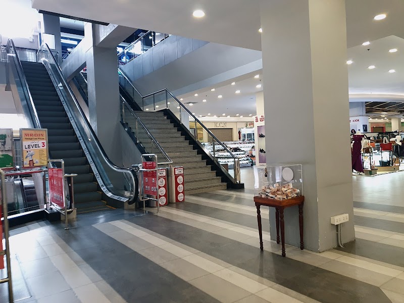 Western-style mall with apparel & jewelry shops, plus a grocery store, a food court & a cinema.